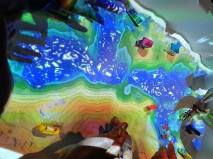 Grace à un logiciel, cette modélisation en réalité augmentée est un outil très innovant qui permet de simuler des pluies afin de mieux comprendre la formation des crues.
