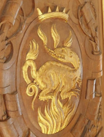 Vous comprenez pourquoi François 1er a choisi comme symbole cette salamandre quasi immortelle. Surmontée d’une couronne et accompagné de la devise « Nutrisco et Extinguo », soit « Je me nourris (sous-entendu du bon feu), j’éteins (sous-entendu le mauvais feu) », elle est représentée, soit crachant des gouttes d’eau pour éteindre le mauvais feu, soit avalant des flammes, le bon feu, pour s’en nourrir et répandre la justice sur le royaume de France.