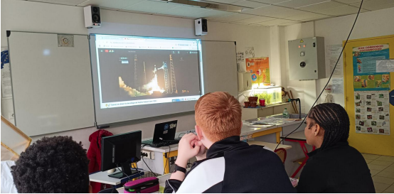 Aujourd’hui, vendredi 13 février 2026 à 11h15, les élèves de la classe de 3E ont eu l’immense chance de pouvoir suivre en direct le décollage de l’astronaute française de l’Agence Spatiale Européenne (ESA), Sophie Adenot, pour la mission Epsilon à bord de la Station spatiale internationale.